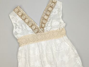 Biała sukienka boho bez rękawów - Materiał: lekka, zwiewna tkanina (dół i część spódnicy półtransparentna), góra z ażurową koronką - Kolor: czysta biel - Krój: luźny, lekko rozszerzany, sięga nad ...