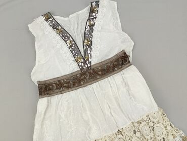 Sukienka bez rękawów w kolorze ecru/kość słoniowa. - Fason: góra dopasowana z marszczeniami i koronkowymi wstawkami z przodu, odcięcie w talii, dołem rozkloszowana spódnica. - Zapięcie: rząd mał...Stan: