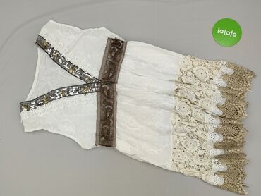 Sukienka damska bez rękawów w kolorze ecru/łamanej bieli, w stylu boho/retro. - Tkanina: lekka, półprzezroczysta, naturalnie układająca się (wygląda jak cienka bawełna lub mieszanka z lnem/wiązany...