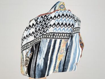 - Wzór: mix etnicznych i floralnych motywów – pasy w odcieniach błękitu, bieli i czerni, geometryczne bordiury oraz paisley na dole