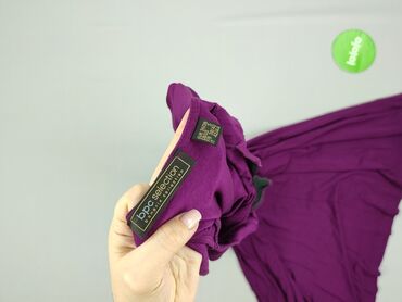 Sukienka damska Miss H., rozmiar 42 - Fason: bez rękawów, dekolt kopertowy V, odcięcie w talii z delikatnymi marszczeniami, rozszerzany dół. - Wzór/kolor: intensywny fiolet z zielono‑różowym, rośl...