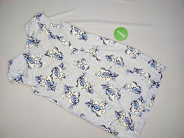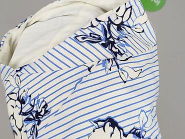 - Wzór: biało‑niebieskie, cienkie pionowe paski z nadrukiem kwiatowym w odcieniach błękitu i granatu.