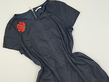 Klasyczna granatowa baza z wyrazistym, czerwonym akcentem kwiatowym podkreśla kobiecy charakter sukienki i ułatwia stylizację z prostymi dodatkami. Idealna dla kobiet szukających wygodnego, minimalistycznego modelu z subtelnym detalem.