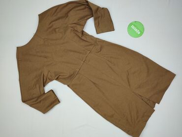 Do pracyBrązowa sukienka o długości do kolan, wykonana z materiału zapewniającego komfort noszenia. Posiada rękawy o długości 3/4, które dodają jej uniwersalności. Dekolt w łódkę z przodu i na plecach subtelnie eksponuje szyję. Z tyłu sukienki znajduje się zamek błyskawiczny, ułatwiający zakładanie i zdejmowanie. Prosty, casualowy krój sprawia, że jest idealna na co dzień, a jednocześnie może być bazą do bardziej eleganckich stylizacji. Nadaje się na różne okazje, od spotkań towarzyskich po wyjścia do pracy.
