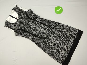 Sukienka damska, rozmiar L. - Fason: ołówkowy, długość midi (przed kolano), z krótkim rękawem - Kolorystyka: beżowo‑czarna, z wyszczuplającymi panelami po bokach - Przód: efektowna, duża aplikacja...
