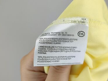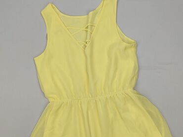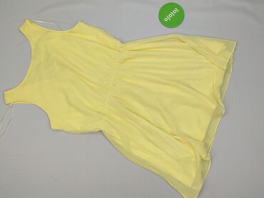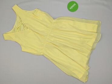 Sukienka damska ClOCKHOUSE w rozmiarze L, idealna na letnie dni. Charakteryzuje się wzorem w paski w kolorach żółtym, granatowym i białym, co nadaje jej świeży i modny wygląd. Bez rękawów, z okrągł...