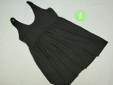Czarna sukienka damska bez rękawów - Krój: prosta, lekko zwężana, długość przed kolano - Dekolt: w kształcie litery V z wiązaniem na sznurek (metalowe końcówki) - Ramiona: delikatnie opadające, be...