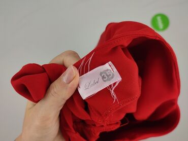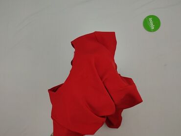 Czerwona sukienka damska z krótkim rękawem - Krój: dopasowana góra, odcięcie w talii, rozkloszowany dół z zakładkami - Dekolt: okrągły - Zapięcie: z tyłu (niewidoczne na zdjęciach, standardowe wsz...