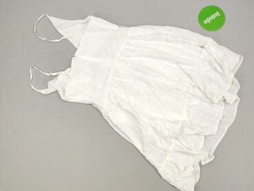 Biała sukienka letnia z wiskozy/bawełny o miękkiej, marszczonej fakturze (muślin). - Krój: mini, lekko rozkloszowana spódnica, talia podkreślona troczkiem do regulacji. - Dekolt: w kształcie V z ...