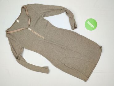 Sukienka damska z dzianiny, ołówkowa, w kolorach beż–karmel–ecru. - Krój: dopasowany, długość za kolano, rękaw 3/4 - Dekolt: łagodnie łódkowy - Zapięcie: zamek na plecach - Wzór: szerokie poziome ...