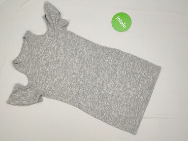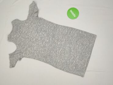 Sukienka damska w kolorze jasnoszarym. - Krój: luźny, prosty top z efektowną falbaną u dołu (asymetryczne wykończenie). - Rękawy: krótkie. - Dekolt: okrągły. - Zapięcie: z tyłu na mały guzik. - Dł...Stan: