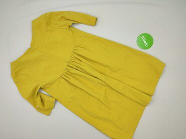 Sukienka damska ECHO, rozmiar 42 - Krój: prosta, ołówkowa, do kolan - Kolor: intensywna żółć - Detale: dekoracyjna, pionowa taśma/lamówka w kontrastowej czerni z przodu; krótkie rękawy; zaszewki m...Stan: