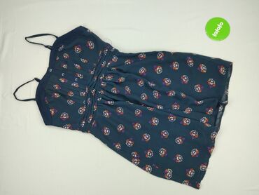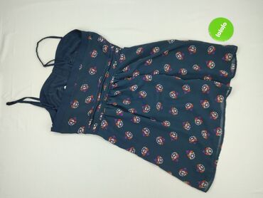 Sukienka damska w kwiaty, rozmiar S - Kolor: granatowy z białym kwiatowym printem - Fason: rozkloszowana, długość do kolan - Dekolt: w kształcie litery V - Rękawy: krótkie, z dekoracyjnymi troczka...