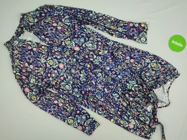 Sukienka damska Esmara, rozmiar 40 - Kolor: granatowy z kwiatowym printem w odcieniach różu, błękitu i zieleni - Fason: mini/za kolano (krótsza), z długim rękawem; elastyczna gumka w pasie podkreś...