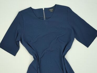 Granatowa sukienka midi marki Esmara. Sukienka ma dekolt w kształcie łódki i rękawy długości 3/4. Wykonana jest z dzianiny, co zapewnia komfort noszenia i dopasowanie do sylwetki. Prosty krój spraw...