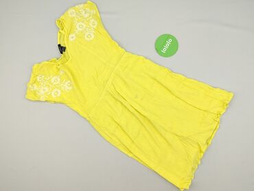 Sukienka Esmara, rozmiar XS (EU/DE/FR 34/36, GB/IE 6/8) - Krój: prosty, t-shirtowy, długość przed kolano - Kolor: jasny żółty z zielonym panelem/lamówką na dole - Rękawy: krótkie - Dekolt: okrągły...