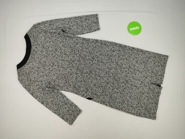 Sukienka FASARDI, rozmiar S - Model: dopasowana, ołówkowa, długość midi - Kolor: jasnoszary melanż - Rękaw: 3/4 - Dekolt: łódka z ozdobną, szeroką satynową wstążką wiązaną przy karku - Materiał: e...