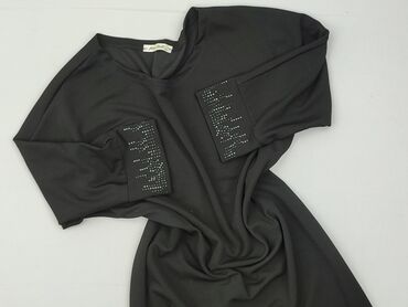 Sukienka damska MOON, rozmiar L - Kolor: czarny - Fason: ołówkowy, długość midi - Rękawy: 3/4 - Dekolt: okrągły z trzema ozdobnymi łezkami i perełkami - Zapięcie: kryty zamek z tyłu - Materiał: śr...