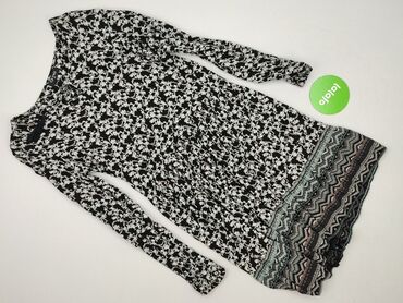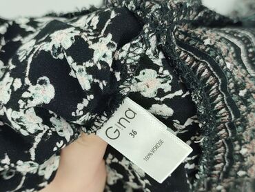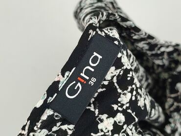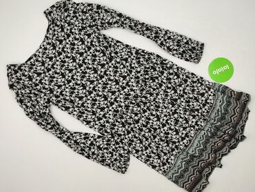 Sukienka Gina, rozmiar 36 - Fason: luźny, koszulowy/tunika, długość przed kolano - Dekolt: zaokrąglony - Rękawy: długie, marszczone z wiązaniami przy mankietach - Print: czarna baza w beżową, nier...