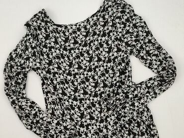 Sukienka Gina, rozmiar 36. - Krój: dopasowana góra, odcięcie w talii, rozkloszowany dół - Rękaw: długi - Dekolt: okrągły - Wzór: kwiatowy (róże) na czarnym tle - Długość: przed kolano (mini/mini-m...Stan: