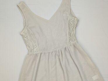 Sukienka damska, rozmiar M. Dwuczęściowy efekt: - góra: kremowa/śnieżnobiała koronka o kwiatowym wzorze, krótki rękaw, zaokrąglony dekolt, delikatne lamowanie przy krawędziach - dół: rozkloszowana ...