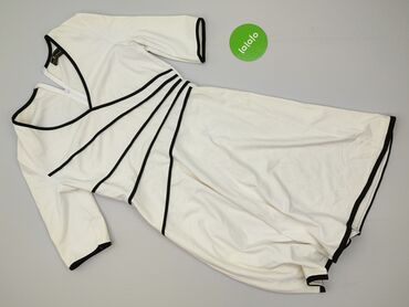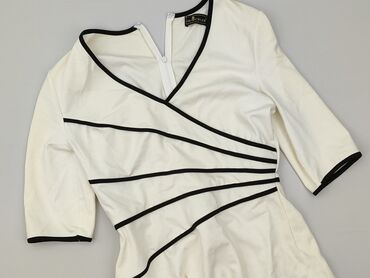 Sukienka damska B’lection, rozmiar 40. - Kolor: jasny, perłowy/beżowo‑kremowy. - Krój: taliowana góra z modelującymi przeszyciami, rozkloszowany dół. - Dekolt: w kształcie litery V. - Rękawy: krót...