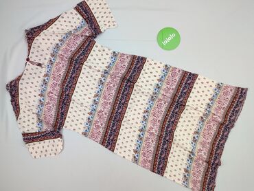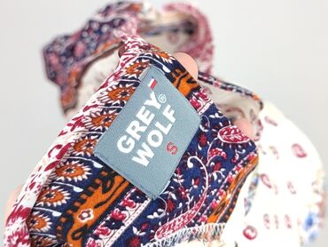 Sukienka damska GREY WOLF - Rozmiar: S (etykieta) - Fason: dopasowany, długość do kolan - Dekolt: w kształcie litery V - Rękaw: krótki - Wzór: kwiatowy, wielobarwny na granatowym tle - Skład mater...