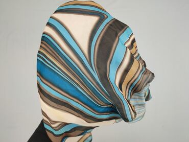 - Wzór i kolory: abstrakcyjne, faliste pasy w odcieniach niebieskiego, turkusu, beżu, kremu i brązu.