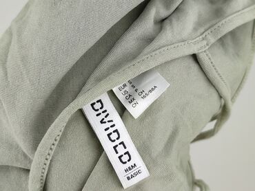 Sukienka damska H&M, rozmiar S - Krój: prosta, T‑shirtowa, długość za kolano - Rękawy: krótkie - Dekolt: okrągły - Kolor: oliwkowa z delikatnym, prążkowanym splotem dzianiny - Materiał: 56% bawełn...