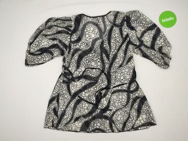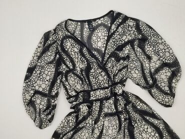 Sukienka H&M, rozmiar M (EU/US/FR M, CN 170/92A). - Kolorystyka: czarno‑biały wzór w eliptyczne kropki z delikatnymi szarymi tonami. - Fason: kopertowy dekolt w serek, krótkie rękawy kimono, el...