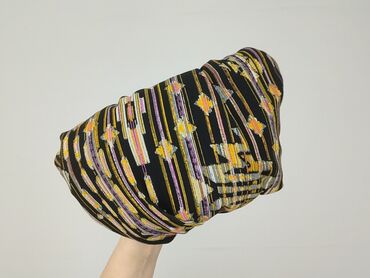 - Wzór: etniczno‑geometryczny na czarnym tle; kolory m.in. musztardowy, beżowy, liliowy, biel i czerń