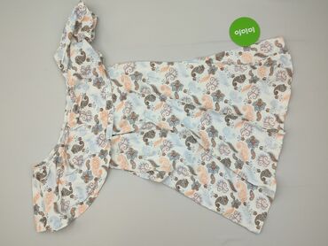 Sukienka damska w kwiaty - Fason: kopertowy/wiiązany z boku, z lekko rozkloszowanym dołem i nieregularnym, asymetrycznym brzegiem - Rękawy: krótkie, bufiaste, z delikatną gumką przy ramionach - De...