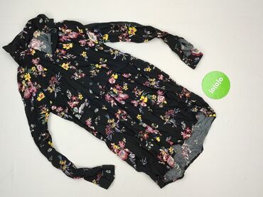 Sukienka damska House, rozmiar M - Fason: bez rękawów, dopasowana w talii, rozkloszowany dół - Wzór: czarna tkanina w kwiaty (odcienie różu, bieli, zieleni, drobne pomarańczowe akcenty) - Długość:...