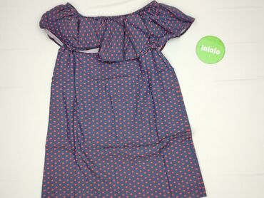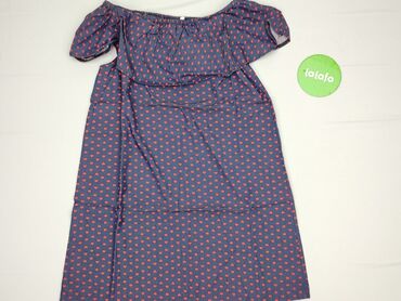 Granatowa sukienka w białe grochy - Krój: dopasowany, ołówkowy, długość przed kolano - Dekolt w kształcie serca z lekkim marszczeniem na biuście - Rękawy krótkie „hiszpanki” z gumką – można nosić ...