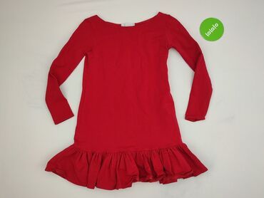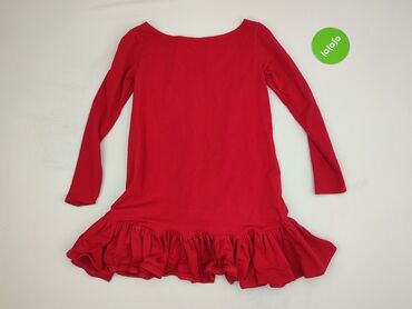Czerwona sukienka mini z falbaną - Krój: prosta góra z okrągłym dekoltem, długie rękawy zakończone marszczeniem/ściągaczem; dół z szeroką, marszczoną falbaną nadającą objętości. - Zapięcie: mały g...