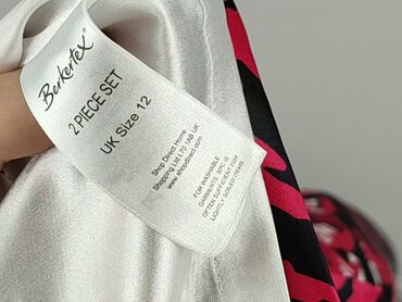 Sukienka marki Berkertex w rozmiarze 12 UK. Używana, ale w idealnym stanie. Wykonana z poliestru z dodatkiem elastanu, z podszewką. Czarny pasek podkreśla talię. Sukienka jest bez rękawów, w kwiatowy wzór w kolorach różowym, czarnym i białym. Idealna na specjalne okazje.