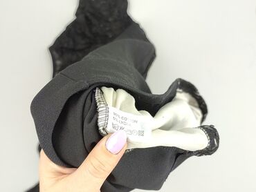 Czarna, koronkowa sukienka damska o dopasowanym kroju, bez rękawów. Charakteryzuje się delikatnym wzorem koronkowym na całej powierzchni oraz ozdobami w postaci listków i perełek w okolicy dekoltu....Stan: