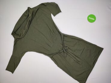 Sukienka damska, oliwkowa, z dzianiny elastycznej - Rozmiar na metce: S - Fason: prosty z lekkim, asymetrycznym przodem i marszczeniami przy biodrach - Długość: za kolano (midi), dłuższy tył - Ręk...