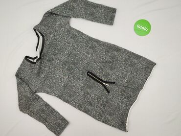 Szara tunika/bluzka damska HOUSE – rozmiar S - Fason: luźna, wydłużona tunika z długim rękawem - Kolor: jasny melanż szary - Kontrastowe wykończenia: czarne lamówki przy dekolcie, mankietach oraz ...
