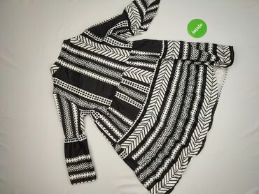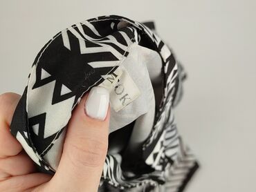 Top damski bez rękawów w czarno‑białą pepitkę. - Krój: luźny, asymetryczny (wydłużony bok), z łagodnie opadającym ramieniem. - Dekolt: łódka, wykończony czarną, satynową lamówką; takie samo wykończ...