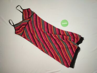 Sukienka damska Lindex, rozmiar 38 - Krój: bez rękawów, dopasowana góra z zaszewkami, lekko rozkloszowany dół - Dekolt: okrągły - Zapięcie: długi metaliczny suwak z tyłu - Kolor/wzór: jasny krem/b...Sukienka damska marki Lindex, w rozmiarze 38. Charakteryzuje się wzorem w pasy w odcieniach fuksji, czerni, bieli i pomarańczu. Posiada cienkie ramiączka, idealne na ciepłe dni. Wykonana w 100% z poliestru, co zapewnia lekkość i przewiewność. Dół sukienki wykończony czarną, prześwitującą tkaniną.