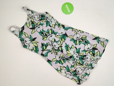 Lekka sukienka damska z ramiączkami, ozdobiona wielokolorowym, kwiatowym wzorem na jasnym tle. Górna część sukienki jest marszczona, co zapewnia dopasowanie do sylwetki. Krój sukienki jest swobodny...Stan: