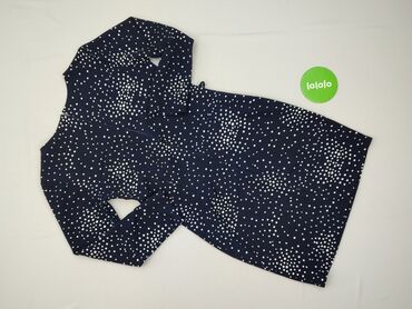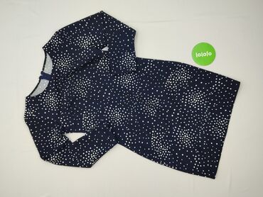 Elegancka sukienka damska w kolorze granatowym, ozdobiona dużymi białymi grochami na całej powierzchni, z wyjątkiem dolnej części, gdzie znajduje się biały panel z granatowym wzorem kwiatowym. Suki...