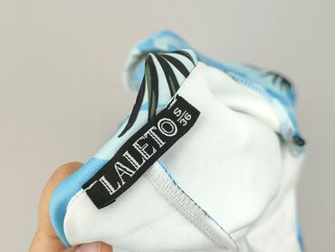 ŚwiętaSukienka damska marki Laleto w rozmiarze S/36. Model o dopasowanym kroju, z jednym odkrytym ramieniem i falbanką. Tkanina jest elastyczna, co zapewnia komfort noszenia i idealne dopasowanie do sylwetki. Sukienka wyróżnia się wzorem w kwiaty i liście w odcieniach błękitu, różu i zieleni, co nadaje jej świeży i tropikalny charakter. Idealna na letnie dni, wakacyjne wyjazdy czy niezobowiązujące spotkania.