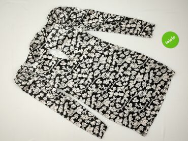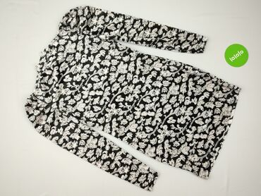 Czarna sukienka damska z białym kwiatowym wzorem. Charakteryzuje się długimi rękawami z rozszerzonymi mankietami oraz okrągłym dekoltem. Fason sukienki jest luźny i zwiewny, z wyraźnie zaznaczoną t...