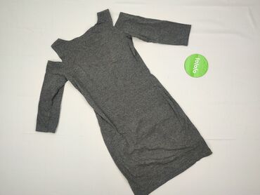 Sukienka damska Sinsay, rozmiar XS - Kolor: szary melanż - Fason: prosta, dzianinowa, długość przed kolano - Rękawy: długie; na jednym ramieniu efektowne wycięcie z marszczeniem i troczkami, na dr...