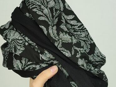 Czarna sukienka damska z białym kwiatowym wzorem. Charakteryzuje się długimi rękawami z rozszerzonymi mankietami oraz okrągłym dekoltem. Fason sukienki jest luźny i zwiewny, z wyraźnie zaznaczoną t...