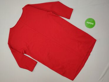 Czerwona sukienka/tunika z dzianiny - Krój prosty, łagodnie zaokrąglony dół - Rękaw 3/4 - Okrągły dekolt - Długość przed kolano (tunika/sukienka) - Zamek błyskawiczny biegnący po skosie od boku ku...