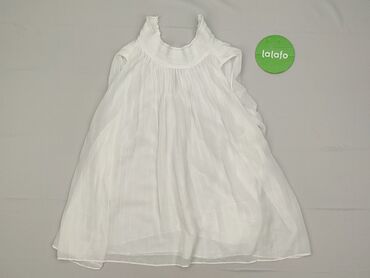 Bez rękawówLekka sukienka bez rękawów w kolorze białym. Charakteryzuje się luźnym, rozkloszowanym fasonem z marszczeniami na wysokości biustu i wokół kołnierzyka, co nadaje jej zwiewności. Wysoki, marszczony kołnierzyk dodaje elegancji, a przezroczysty materiał sprawia, że jest idealna na ciepłe dni lub jako element stylizacji warstwowych. Prosty, ale stylowy krój zapewnia komfort noszenia i swobodę ruchów. Idealna na letnie wyjścia, plażę, czy casualowe spotkania.