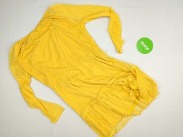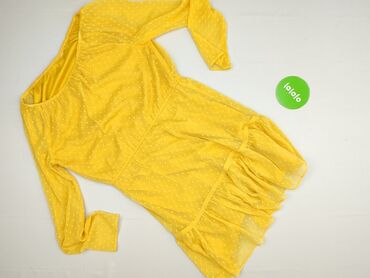 Żółta sukienka bez rękawów w białe grochy - Krój: luźny, oversize, trapezowy z marszczeniami/zaszewkami z przodu i z tyłu - Długość: midi (wg proporcji na zdjęciach) - Dekolt: okrągły - Kieszenie:...Stan:
